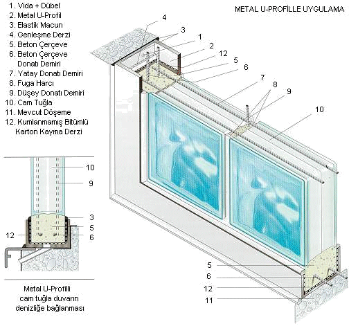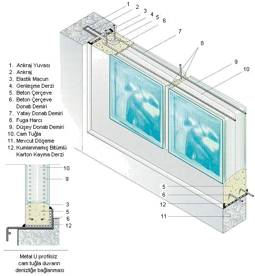 yi aşan cam tuğla duvarlar taşıyıcı elemanlar ve/veya genleşme